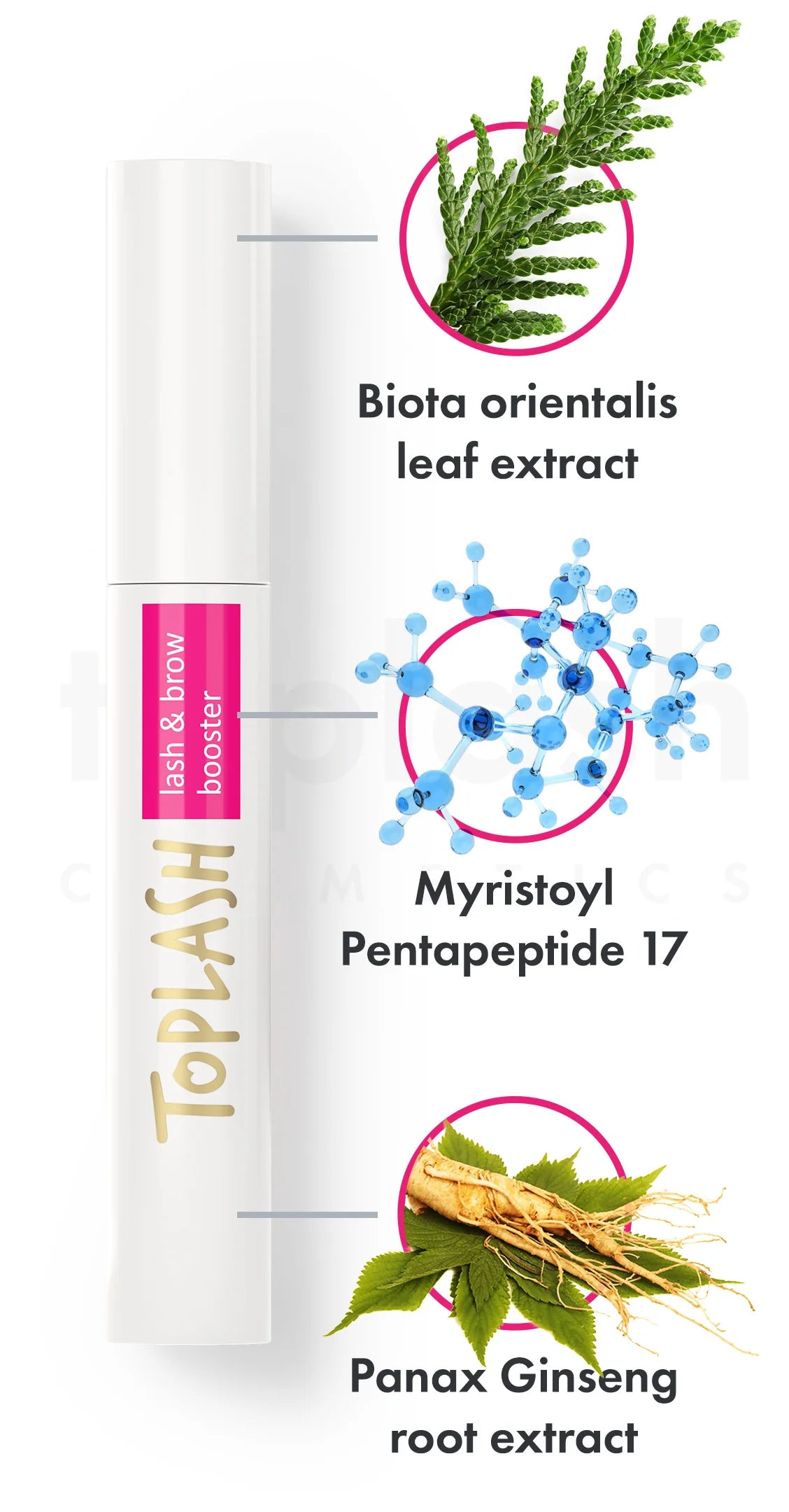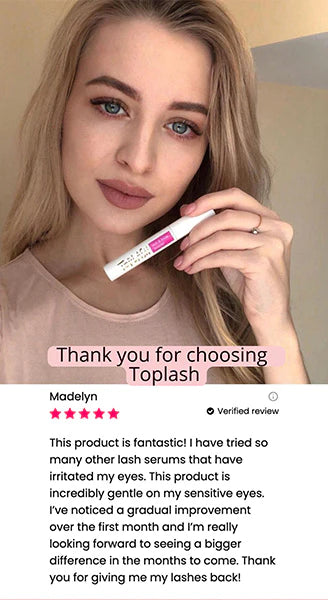 Toplash on läpikäynyt tiukan turvallisuustestauksen riippumattomissa tutkimuslaboratorioissa. Kuitenkin, koska tutkimuksia raskaana olevilla tai imettävillä naisilla ei ole tehty tuotteestamme tai muista markkinoilla olevista ripsiseerumeista, suosittelemme konsultoimaan terveydenhuollon ammattilaisen kanssa ennen tuotteemme käyttöä.
