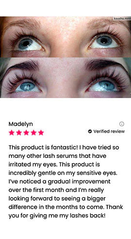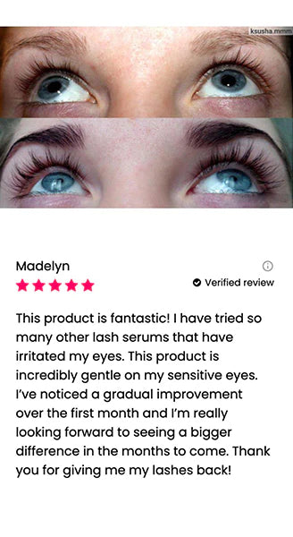 Kaavamme on rikastettu Myristoyl Pentapeptide-17 -yhdisteellä, joka tukee luonnollista hiusten uusiutumista ja pidentää hiusten kasvuvaihetta. Tämä ainesosa auttaa ripsiäsi kasvamaan paksummiksi, pidemmiksi, runsaammiksi ja terveemmiksi.