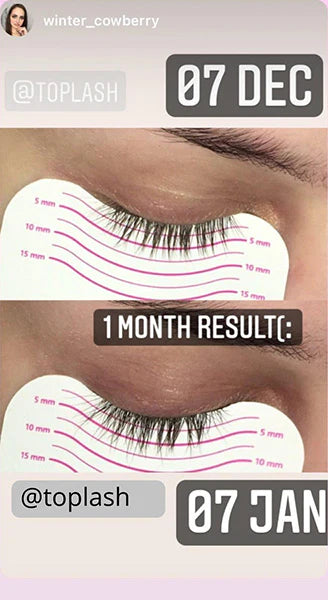 Useimmissa tapauksissa ripset palaavat alkuperäiseen kuntoonsa noin 4–6 viikkoa käytön lopettamisen jälkeen. Jos haluat ylläpitää tuloksiasi, suosittelemme tuotteen käyttöä kahdesti tai kolme kertaa viikossa.